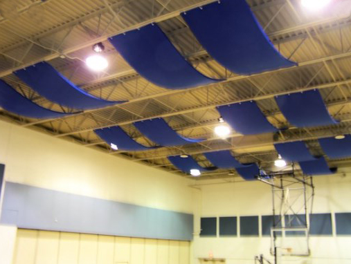 En el caso de los pabellones deportivos con un gran volumen podemos encontrar una reverberación y eco característica, de ahí el tipo de cortinas que se utiliza.